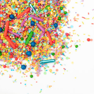 Sugar, starch (WHEAT/ maize), Vegetable Oil (coconut), WHEAT semolina, stabiliser: E460(i), Arabic gum, Glucose Syrup, emulsifier: E472a, Colours (E120, E132, E133, E141, E171, concentrate of radish, lemon, blackcurrant), Glazing Agent (E901 with coconut oil, shellac, beeswax and E464), confectioner’s glaze, dextrin, red #3, blue #1 lake, cocoa with alkali, natural and artificial flavour, SOY lecithin, carnauba wax