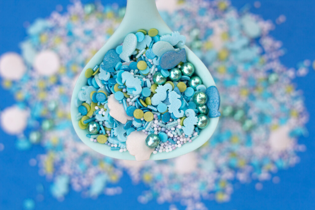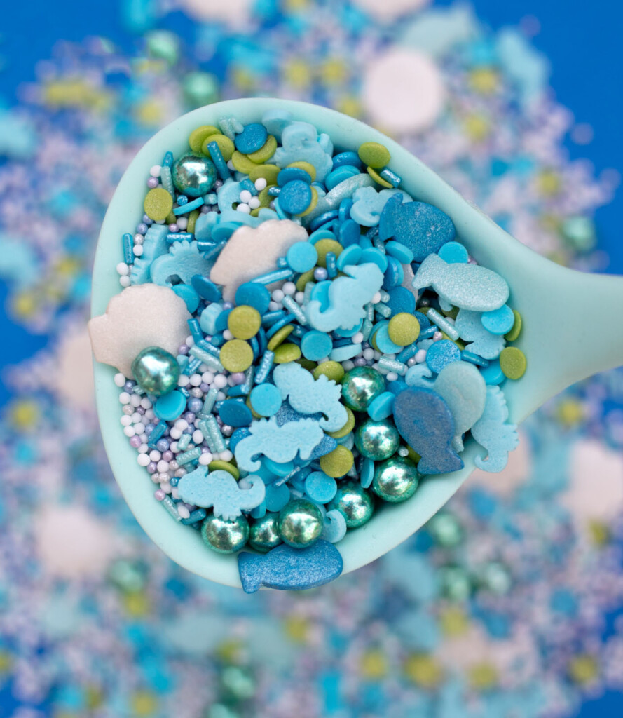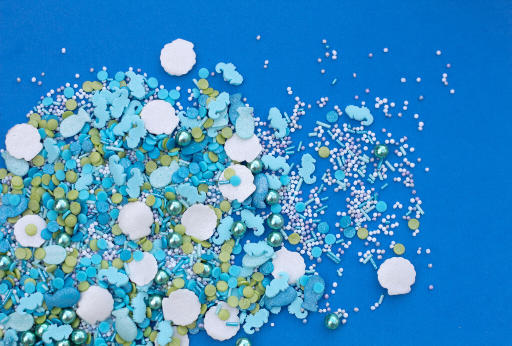 Sugar, Potato starch, Sunflower oil, Vegetable Oil (coconut), Rice flour, WHEAT Flour, Starch (WHEAT / maize), Colours (E101, E132, E133, E141, E153, E160(a(ii)), E171, E174), Glazing agent (E901 with coconut oil, shellac, beeswax), rapeseed oil (partly hydrogenated),